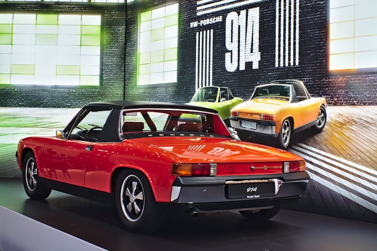 Der Name VW-Porsche, der günstige Einstiegspreis von etwa 12.000 DM sowie Verarbeitungsmängel und Rostanfälligkeit der ersten Exemplare trugen nicht gerade zum Image des 914ers bei, sondern brachten ihm den Spottnamen „Volks-Porsche“ oder gar „VoPo“ ein. Dabei hatten VW und Porsche eigentlich einen richtig guten Sportwagen entwickelt, der mit seinem starren Targa-Bügel und der geradlinigen Silhouette ein typisches Kind der 1970er-Jahre ist. Mit einem Gewicht von nur 940 kg kam selbst der „kleine“ 914/4 zu sehr guten Fahrleistungen mit einer Spitzengeschwindigkeit von 177 Stundenkilometern. Der Sechszylinder-Motor des 914/6 knackte sogar knapp die magische 200 Stundenkilometer-Marke. Zudem war der Wagen mit eingeklappten Frontscheinwerfern, also tagsüber, sogar aerodynamischer als ein Porsche 911. Das Mittelmotor-Konzept bescherte dem 914er zusätzlich eine gewisse Alltagstauglichkeit. Schließlich gab es vorne und hinten je einen Kofferraum. Selbst wenn das Targa-Dach im hinteren Gepäckabteil verstaut ist, hat man vorne immer noch Stauraum zur Verfügung.