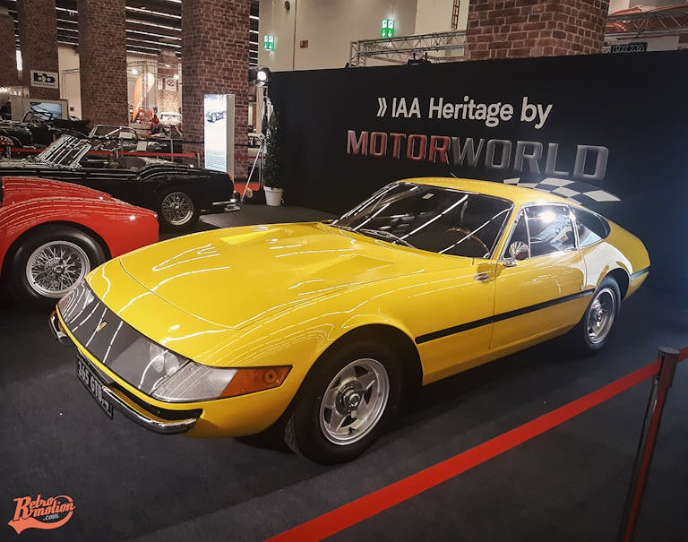 Ironischerweise fanden wir all das, was wir an den Fahrzeugen der Zukunft vermissten, ausgerechnet in einer Halle, die bei vielen Messebesuchern auf heftigen Gegenwind stieß: in der IAA Heritage Halle, organisiert durch unseren Partner Motorworld. Die knapp 11.000 qm umfassende Ausstellungsfläche fokussierte sich ausschließlich auf klassische Fahrzeuge und sollte eine Brücke zwischen Zukunft und Herkunft der Mobilität schlagen. Für Oldtimer-Fans war dieser Ort ein kleines Paradies: Allen voran war ein Ferrari 250 Testa Rossa Spider Scaglietti zu bestaunen, der mit einem Marktwert von 15 bis 30 Millionen Euro eines der wertvollsten Fahrzeuge aller Zeiten ist. Nicht minder wertvoll war der ebenfalls von Ferrari ausgestellte 250 GT California Spider SWB, unserer Meinung nach eines der schönsten Fahrzeuge überhaupt. Neben der unfassbaren Ferrari-Ausstellung gab es auch Bugatti-Klassiker und einen Woodstock-Bulli zu sehen. Beeindruckend fanden wir auch den Rinspeed Yello Talbo, der auf der Messe zum Verkauf stand und zu den eher unbekannteren Modellen gehört.