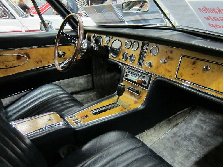 Neben der extravaganten Karosserie, der man sage und schreibe zwanzig Lackschichten gönnte, legte man bei Stutz vor allem auf die Innenausstattung des 2+2-Sitzers großen Wert, um der angestrebten Käuferschicht gerecht zu werden. Im Innenraum dominieren vergoldete, in poliertes Walnussholz eingebettete Instrumente, Sitzbezüge aus englischem Connolly-Leder und Teppiche aus neuseeländischem Lammfell. Dazu findet man elektrisch verstellbare Sitze und Spiegel, ein Kassettenradio, eine Klimaanlage und einen Tempomat. Und wäre das alles noch nicht genug: Gestartet wird der Blackhawk mit einem goldenen Zündschlüssel.